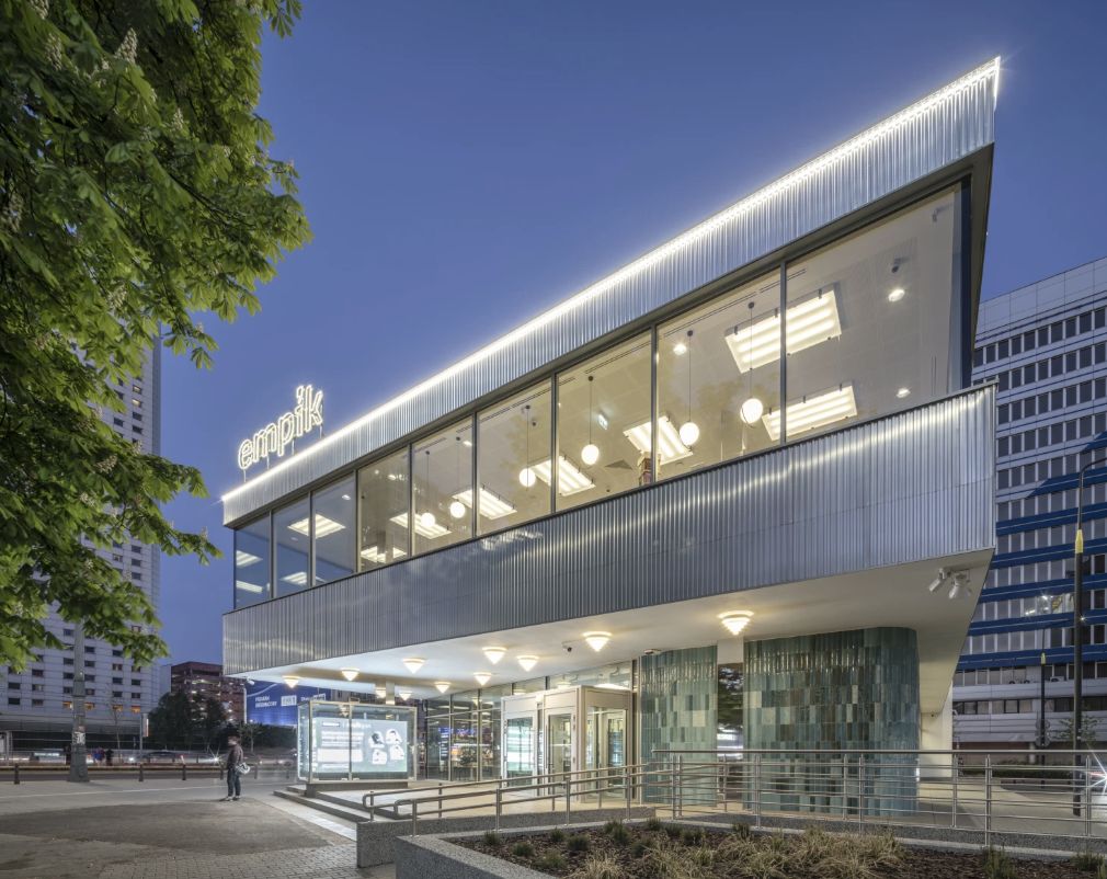 During renovation, original neon elements, including the rooster motif, were uncovered and preserved for historical documentation. On December 13, 2024, the pavilion reopened as a flagship Empik store, demonstrating how modern technologies can enhance architectural heritage, creating a bridge between Warsaw’s past and contemporary urban life.