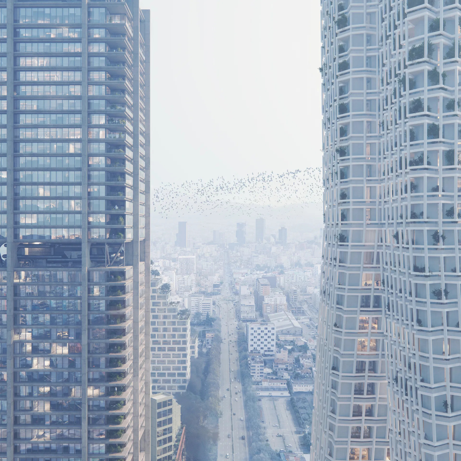 Standing beside the Bond Tower, the Oricon Tower establishes a deliberate relationship with its immediate surroundings. Its base is open and transparent, designed with deep recesses and glazed street-facing façades that allow natural light to filter in and invite interaction with the public realm. As the building rises, its vertical rhythm emerges through layers of repetition and shadow, creating a façade that appears in motion under varying light conditions. Its location on the main axis between Tirana International Airport and the city center reinforces its dual identity: solid and introverted when approached from the airport, and gradually more open and expressive as it meets the heart of the city. This thoughtful modulation transforms the structure into both a marker of arrival and a seamless continuation of urban life.