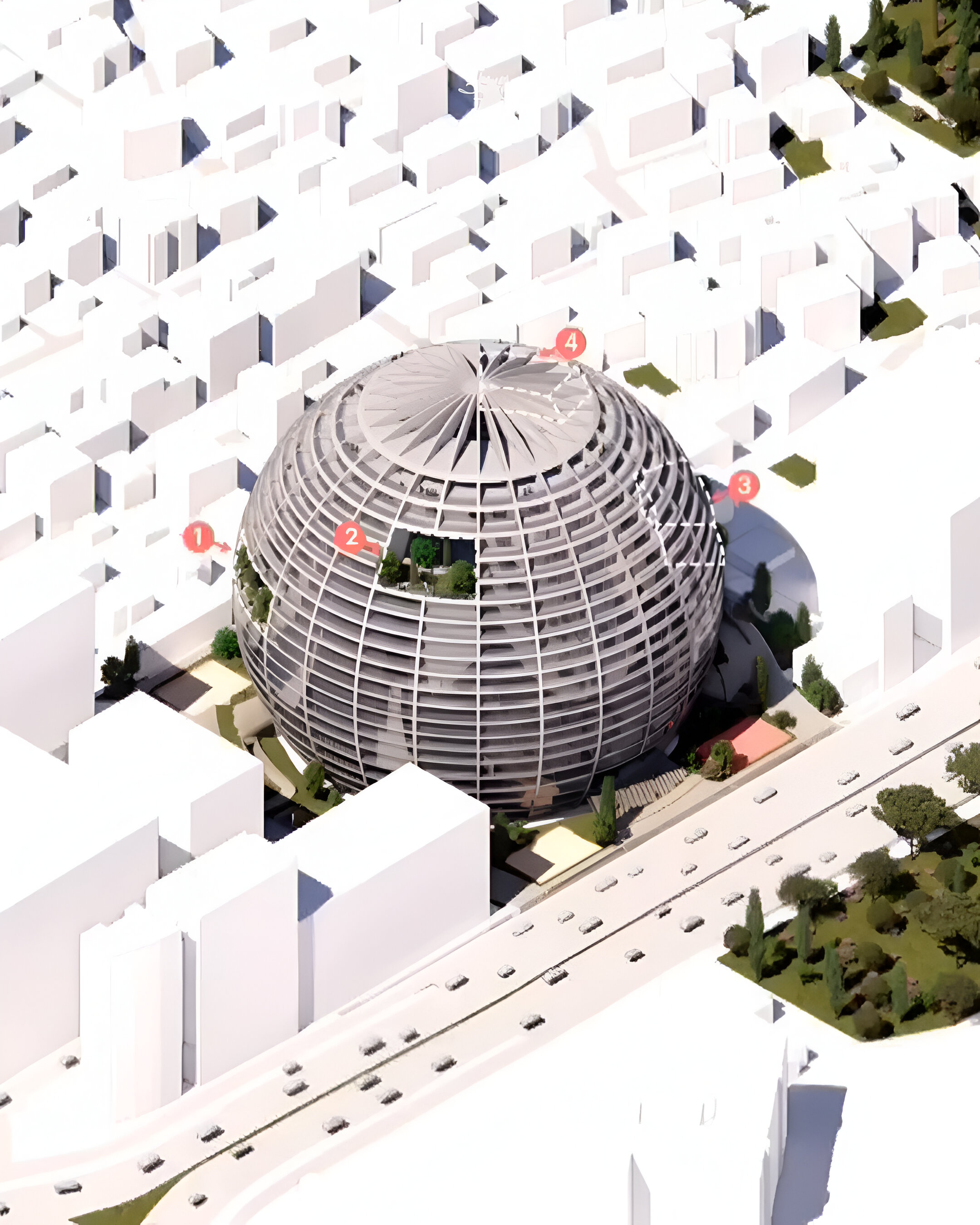 We designed an open forum in the city center that revitalizes the site, expands public spaces, and integrates three residential buildings and a sports hotel, while connecting seamlessly with the surroundings.