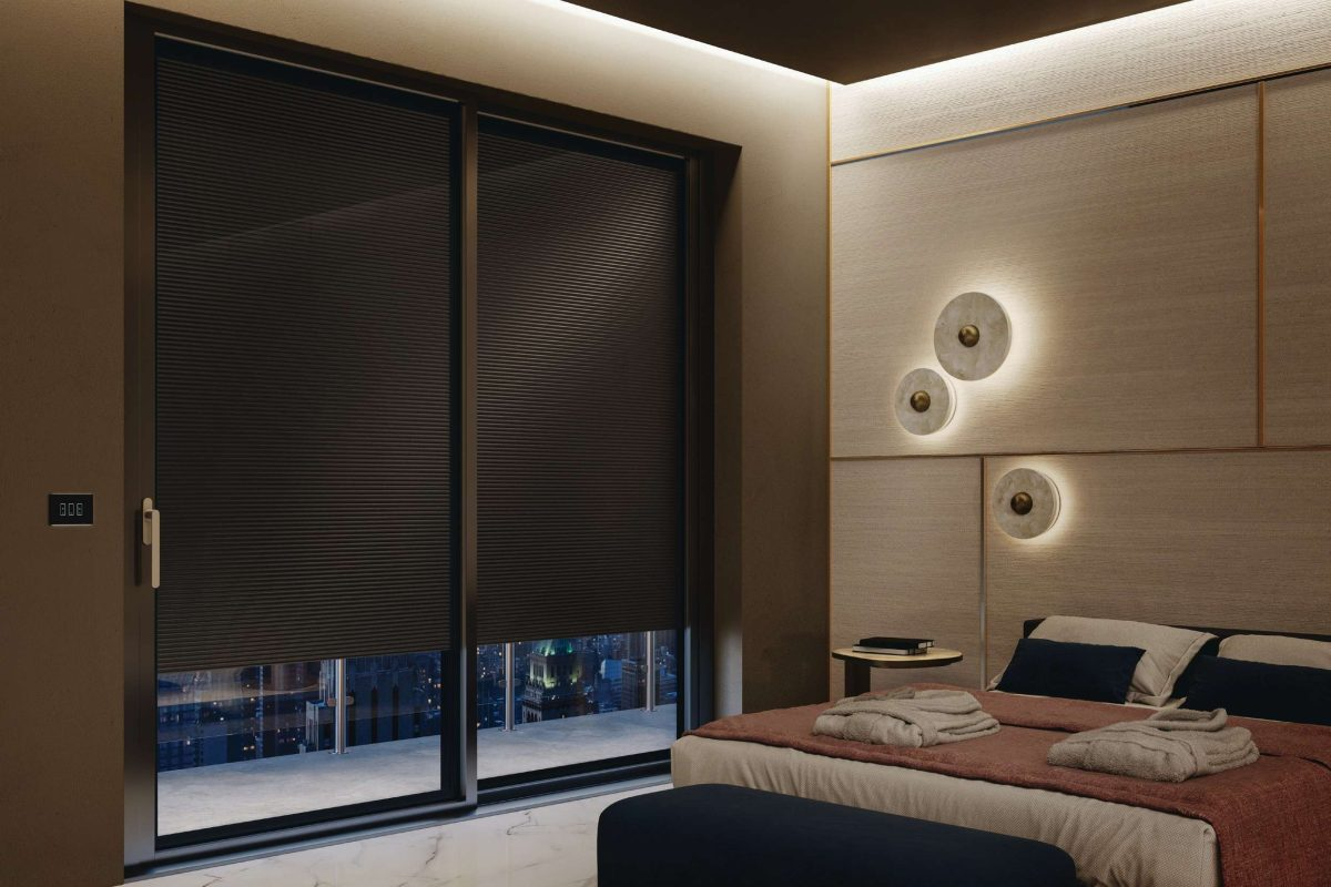 The motorised blind is easily operated via wall switch or remote control, and being fully enclosed within the IGU, it remains dust-free and maintenance-free. Its insulating properties are further boosted by a PVD-coated reflective film, patented spacer bars, and high-performance glass options, including Planitherm One or Saint-Gobain COOL-LITE SKN 176 II.
