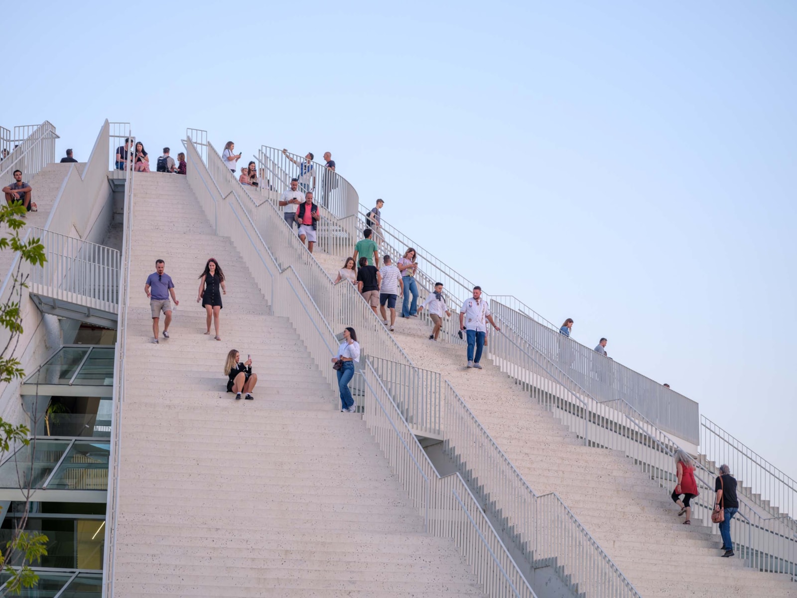 MVRDV’s design pays homage to the building’s unique history and the people’s resilience. For many Albanians, the Pyramid has long symbolized victory over the regime. In the years following the fall of communism, it became a popular hangout for youth who would climb and slide down its sloping surfaces, a spontaneous act of reclaiming the structure.